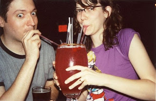 Dan and Sara enjoy a giant goblet of something.